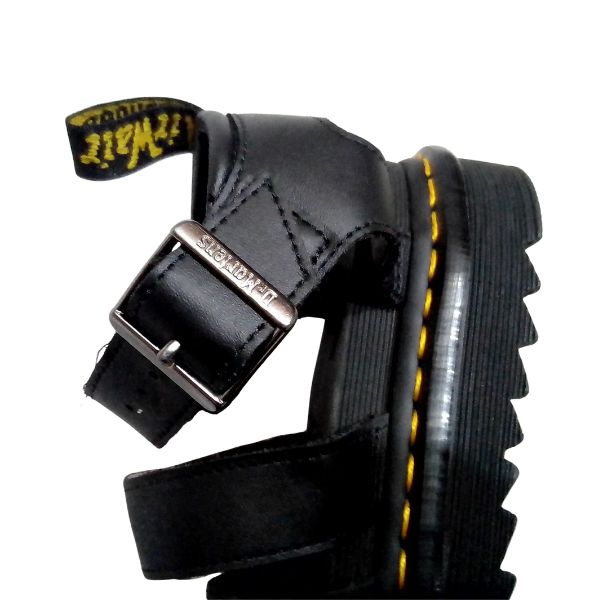 Dr. Martens Blaire Black Leather Sandals deliver rebellious flair in a classic slip-on silhouette. Crafted from premium smooth leather, they feature twin adjustable straps with signature yellow welt stitching and sturdy nickel buckles. Built on the AirWair air-cushioned sole and Goodyear-welted construction, these sandals offer all-day comfort and durability. The chunky platform adds bold edge, while the heel-loop ensures easy on-off. Timeless Dr. Martens style meets summer versatility.