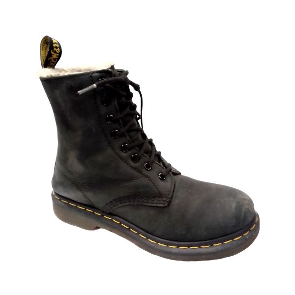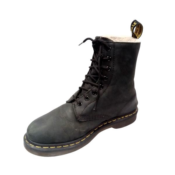 Dr. Martens Serena faux‑fur lined boots pair classic 8‑eye DNA with insulated comfort. Crafted from durable smooth leather with a plush faux‑fur cuff, Goodyear‑welted construction and the signature AirWair air‑cushioned sole for superior grip and all‑day wear. Clean lines, reinforced stitching and a branded heel loop sharpen the profile—a refined, winter-ready Doc that balances rugged durability with polished presence. Popular in Dr Martens searches and loved by collectors.